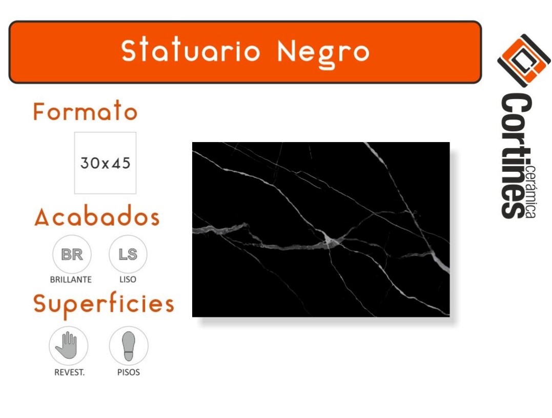 | Cer. Cortines Statuario Negro 30 x 45 Cj. 1.35 m2 | |